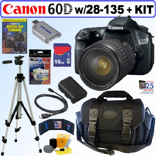 Canon EOS 60D 18 MP CMOS Digital SLR Camera with EF 28-135mm f/3.5-5.6 IS USM Standard Zoom Lens + 16GB Deluxe Accessory Kit