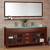 Looking for 71" Landford Double Vanity Cabinet with Mirror and Shelf Great Deals, Online shopping, 71" Landford Double Vanity Cabinet with Mirror and Shelf Read Product Review, Features, Specs, Description, Check Prices Update & More satisfactory for this item reviews! 71" Landford Double Vanity Cabinet with Mirror and Shelf Give your master bathroom a modern twist by adding the 71 Landford Double Vanity Cabinet. Complete with vanity, top, mirror and shelf, this large vanity will be a favorite element of your daily routine. Made of solid Oak with Cherry finish. Features two sets of cabinet doors and three functional drawers, all soft-close. Vanity set includes the vanity cabinet and a tempered glass top with two integral basins. Available with or without matching mirror and shelf. Tempered glass vanity top is a soft green glass with a white painted underside. Tempered glass top is 1/2 thick. Brushed Aluminum hardware. Overall dimensions: 71 L x 21-3/4 W (front to back) x 34 H (± 1/2 ). Basins measure: 17 L x 12-1/2 W (front to back) (± 1/2 ). Basins are 5 deep. Mirror overall dimensions: 70-3/4 L x 26-3/4 H. Mirror glass only dimensions: 67-5/8 L x 23-5/8 H. Shelf overall dimensions: 70-7/8 L and projects 4-5/8 from the wall. Sinks are pre-drilled with single faucet holes. Faucets sold separately.