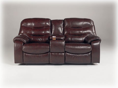 Contemporary Burgundy Rourke Double Reclining Loveseat w/ Console