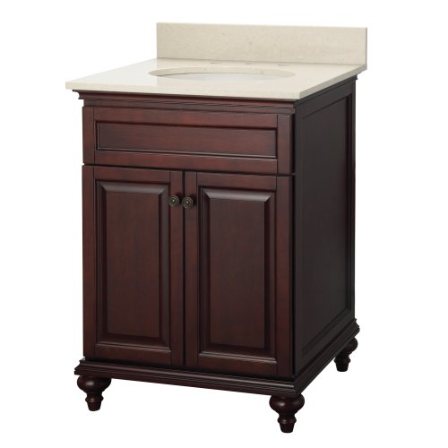 Foremost AYTVT2522 Amelyn Traditional Bathroom Vanity with Engineered Stone Top, Tobacco?The Amelyn bathroom vanity collection is 24" wide with engineered stone top and pre-attached vitreous china sink. This bath vanity comes in a rich Tobacco finish and is fully pre-assembled excluding knobs. A 4" optional backspalsh is also included with the Amelyn vanity.