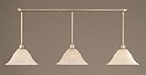 Toltec Pool Table Light Brushed Nickel Pendant 14" White MarbleBulbs not included. Type of bulb: medium base. Requires three -150 wattage bulbs. Canopy comes with 1-3 in., 1-6 in., 2-12 in., and 1-18 in. stem sections. Certification: UL/CUL. Brushed nickel finish. 58 in. L x 14 in. W x 9 in. H. Overall Height: 60 in.. Canopy: 48 in. L x 4.5 in. W x 2 in. H The designs feature some of the most exquisite finishes and spectacular glass selections in the lighting industry. It only adds to the charm, beauty and value of each and every lighting fixture.